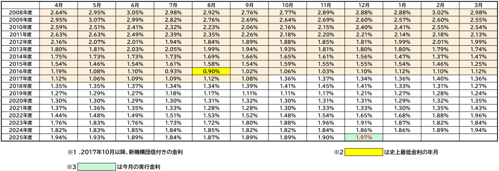 | 金利情報 2025年12月実行金利 | 融資率 9割以下 | 融資率 9割超 |