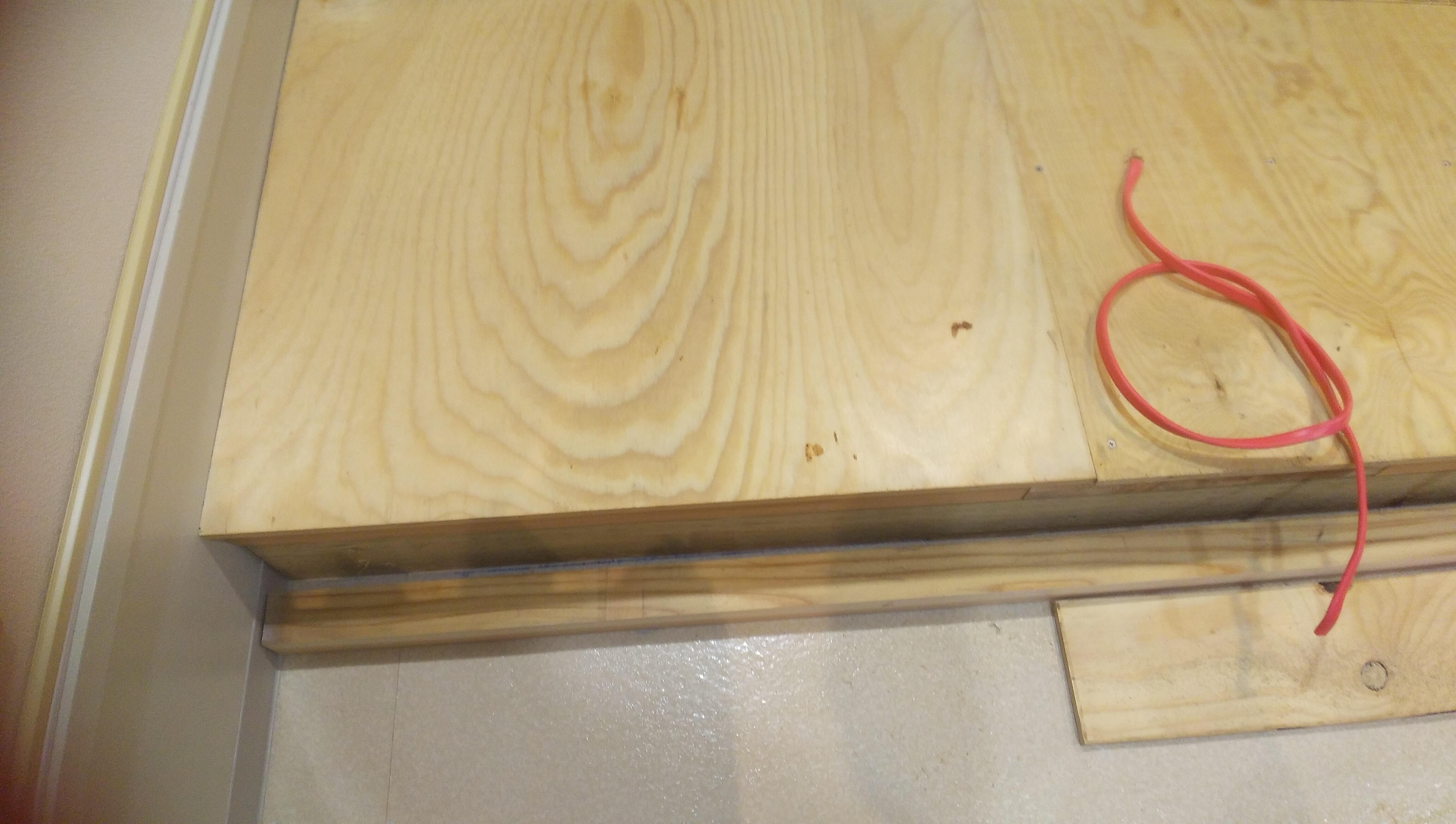 コンパネやこれから貼る床材にも慎重に穴をあけての作業が続きます