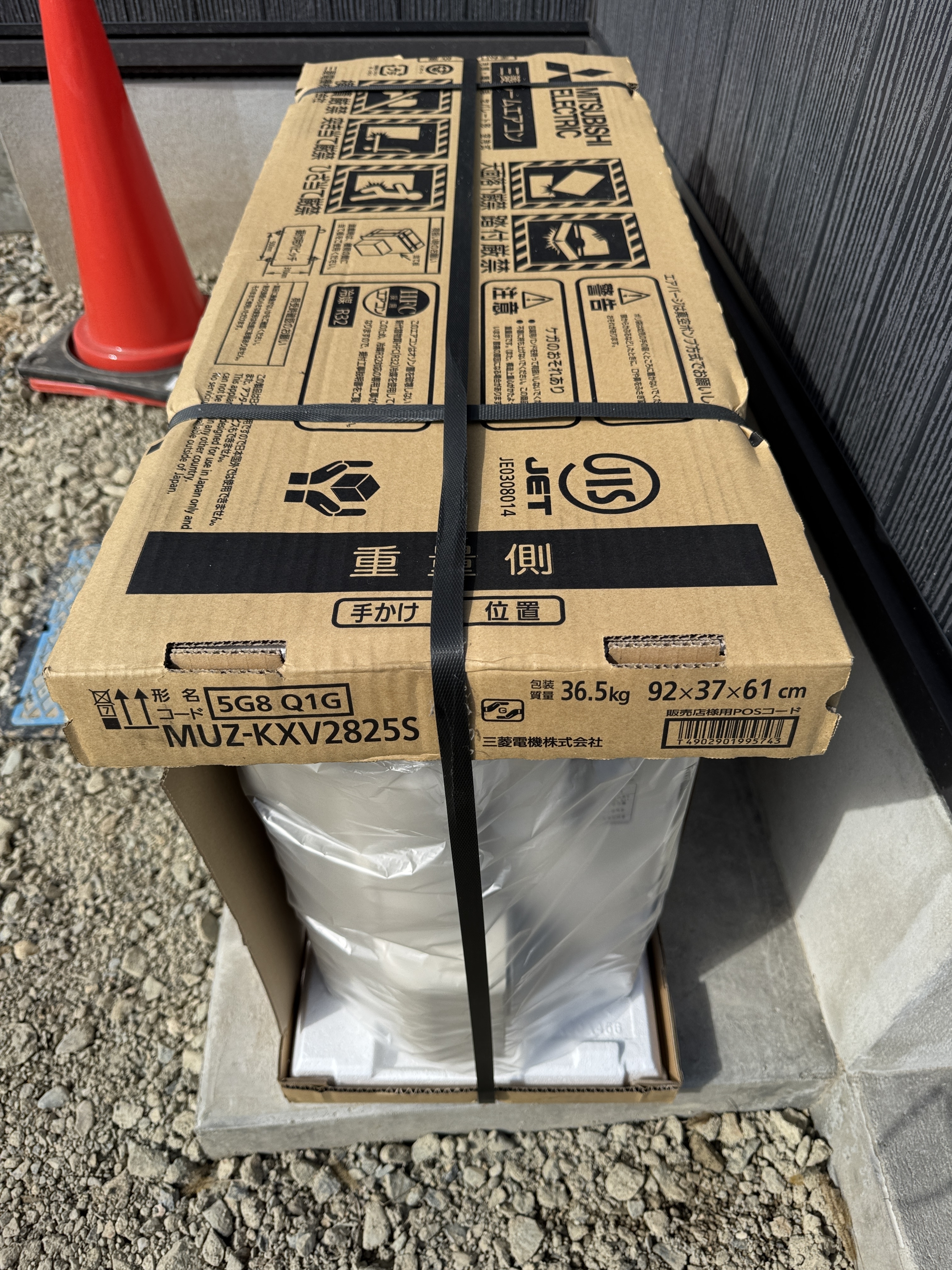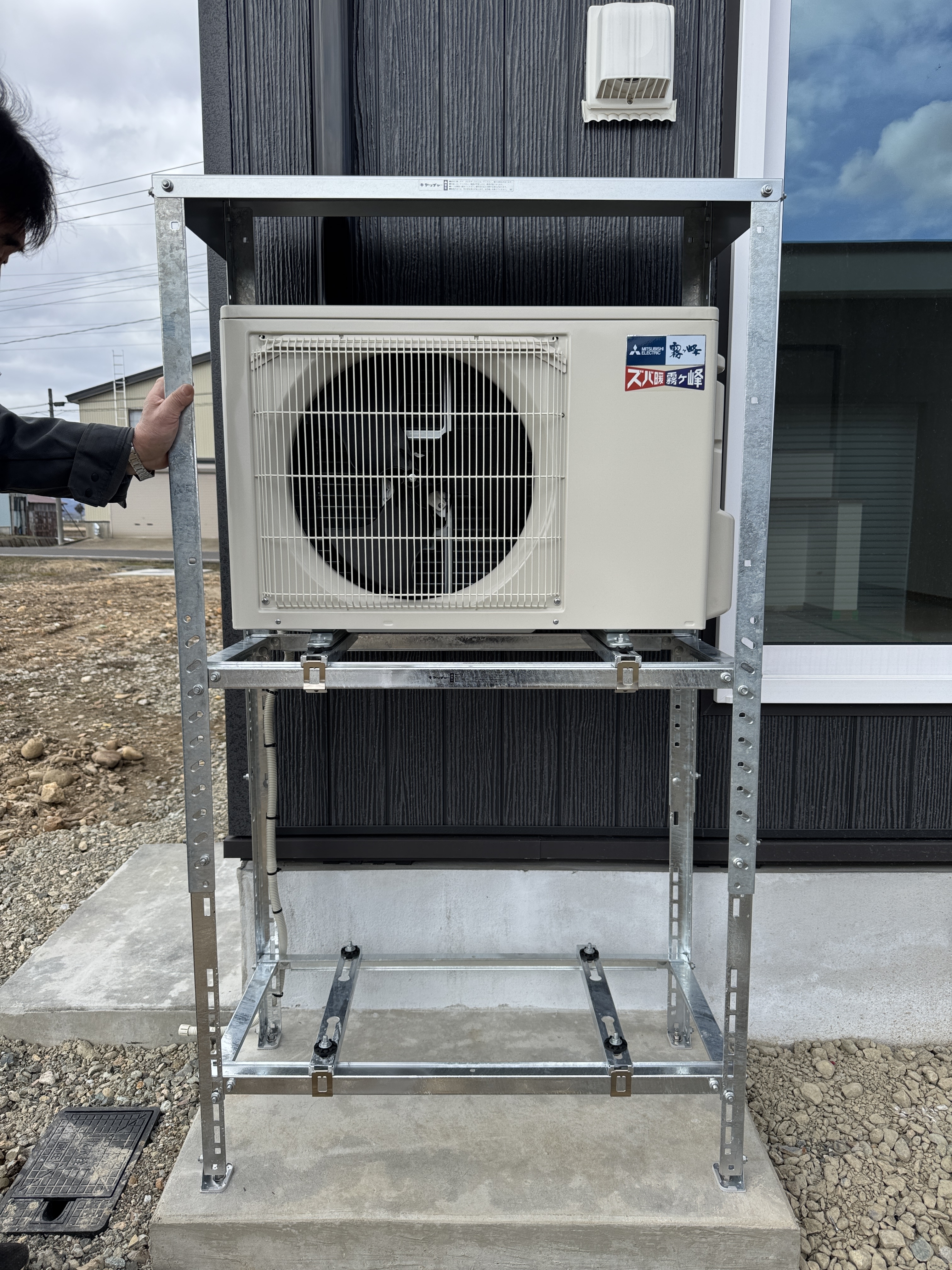 36.5㎏もある室外機を一人で取り付けする姿
